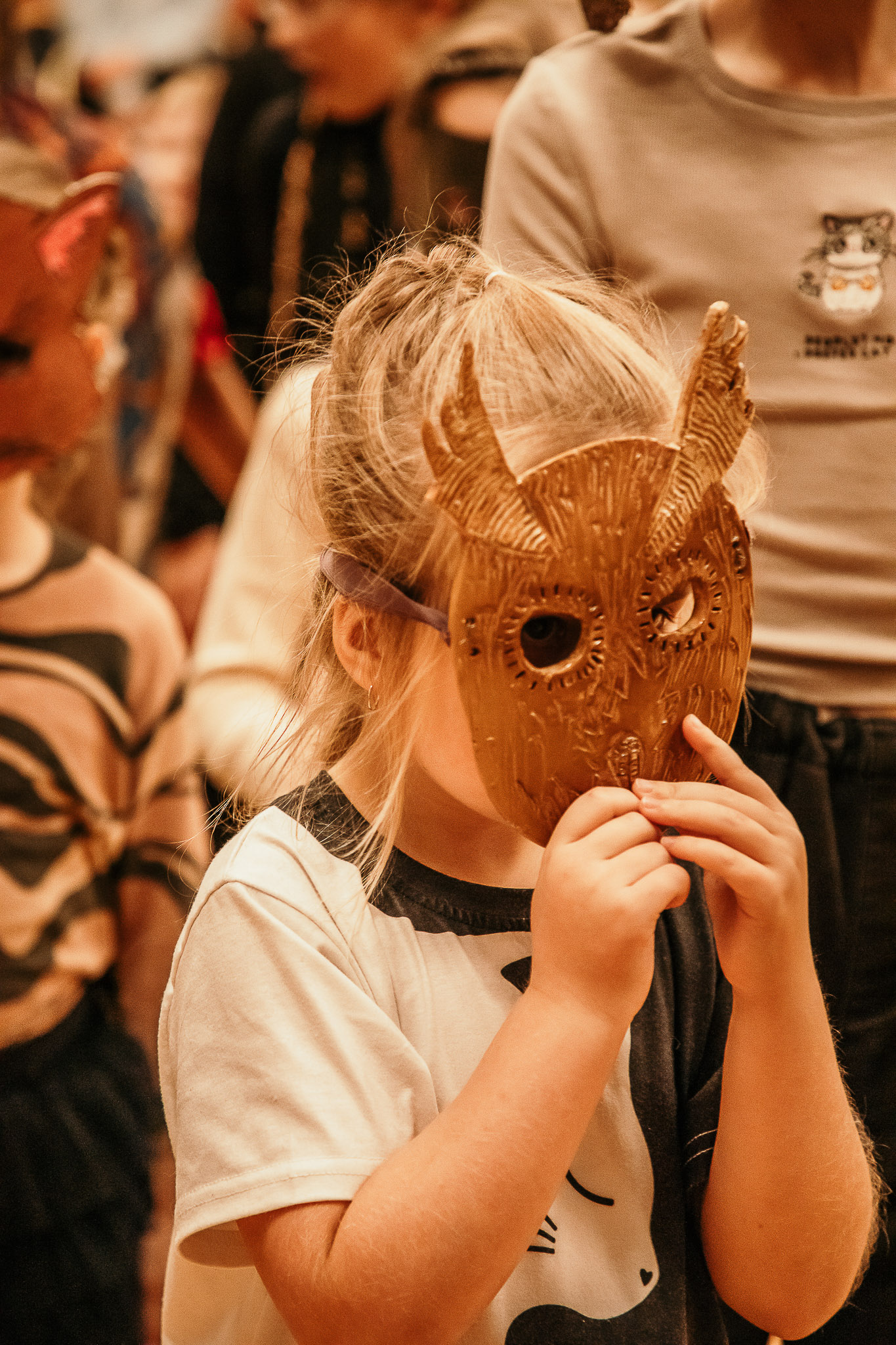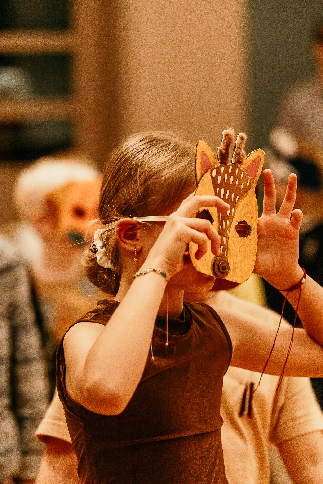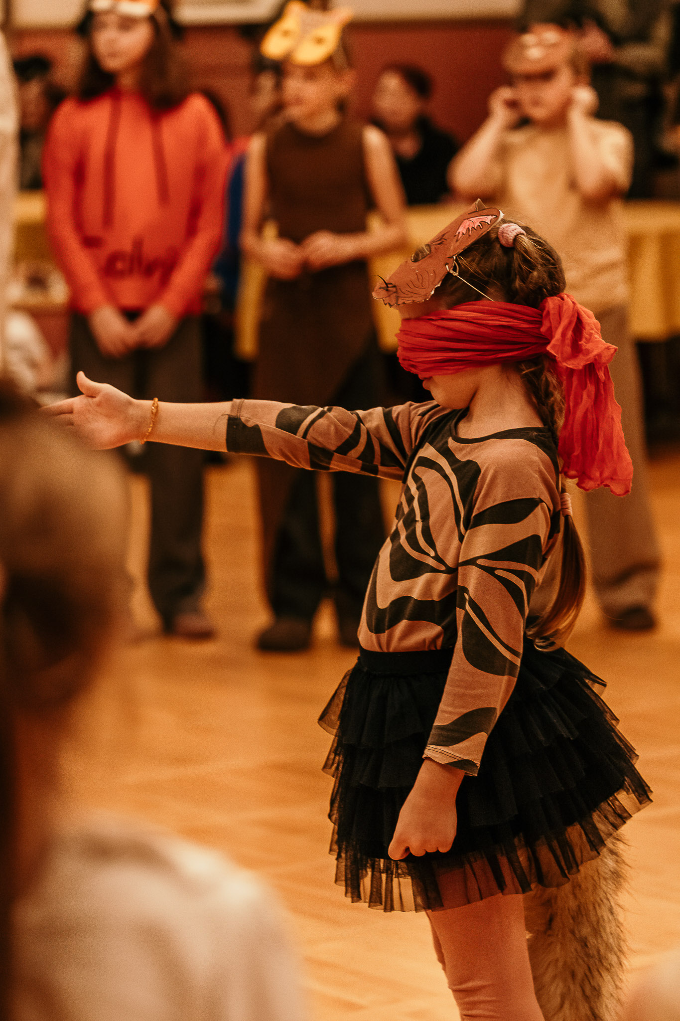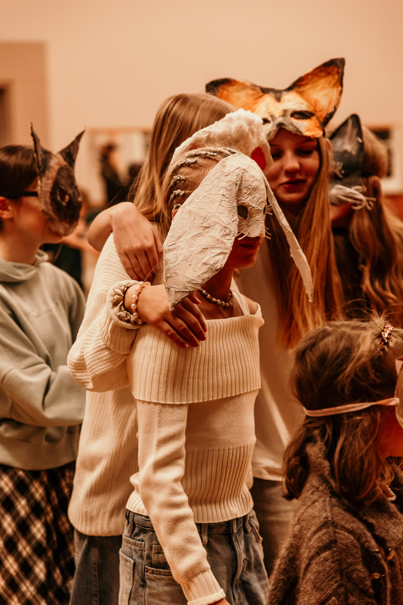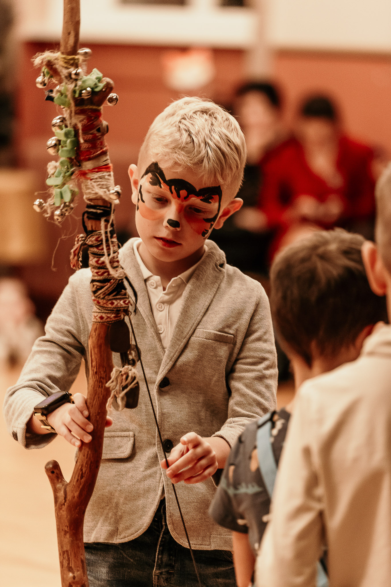Pēc tam ieradās tautas tradīciju grupa “Budēļi”, kas lika visiem zālē atdzīvoties. Viņi stāstīja par budēļu masku nozīmi, aicināja visus bērnus piedalīties jautrās dejās un rotaļās, atgādinot senās Mārtiņdienas paražas.