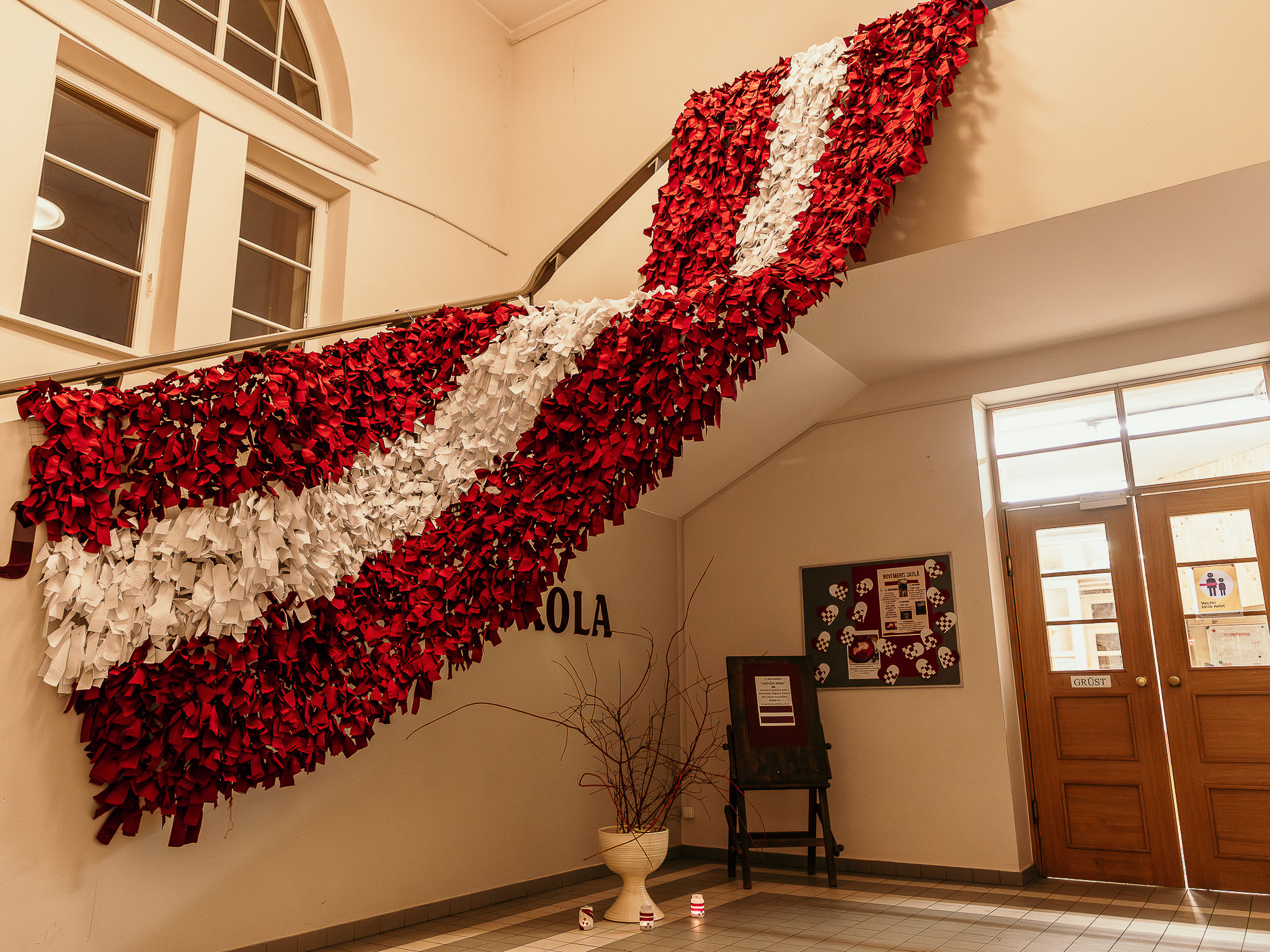 Arī skolas telpās Flotes ielā 8 audzēkņi piedalījās šajā aktivitātē, veidojot mazāku karogu, lai iesaistītu visus bērnus, kas šeit apmeklē interešu izglītības nodarbības.