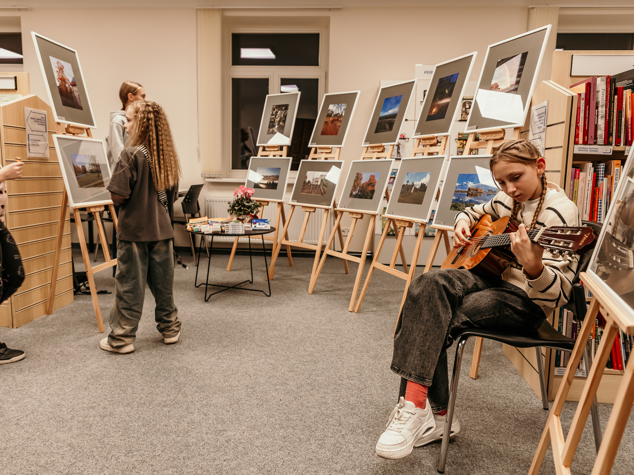 Pasākuma īpašo, jauko noskaņu radīja Ksenija Jaščenkova, kura klusi spēlēja ģitāru, kamēr pasākuma dalībnieki apskatīja fotoizstādi. Jāatzīmē, ka viņas darbs arī apskatāms izstādē.